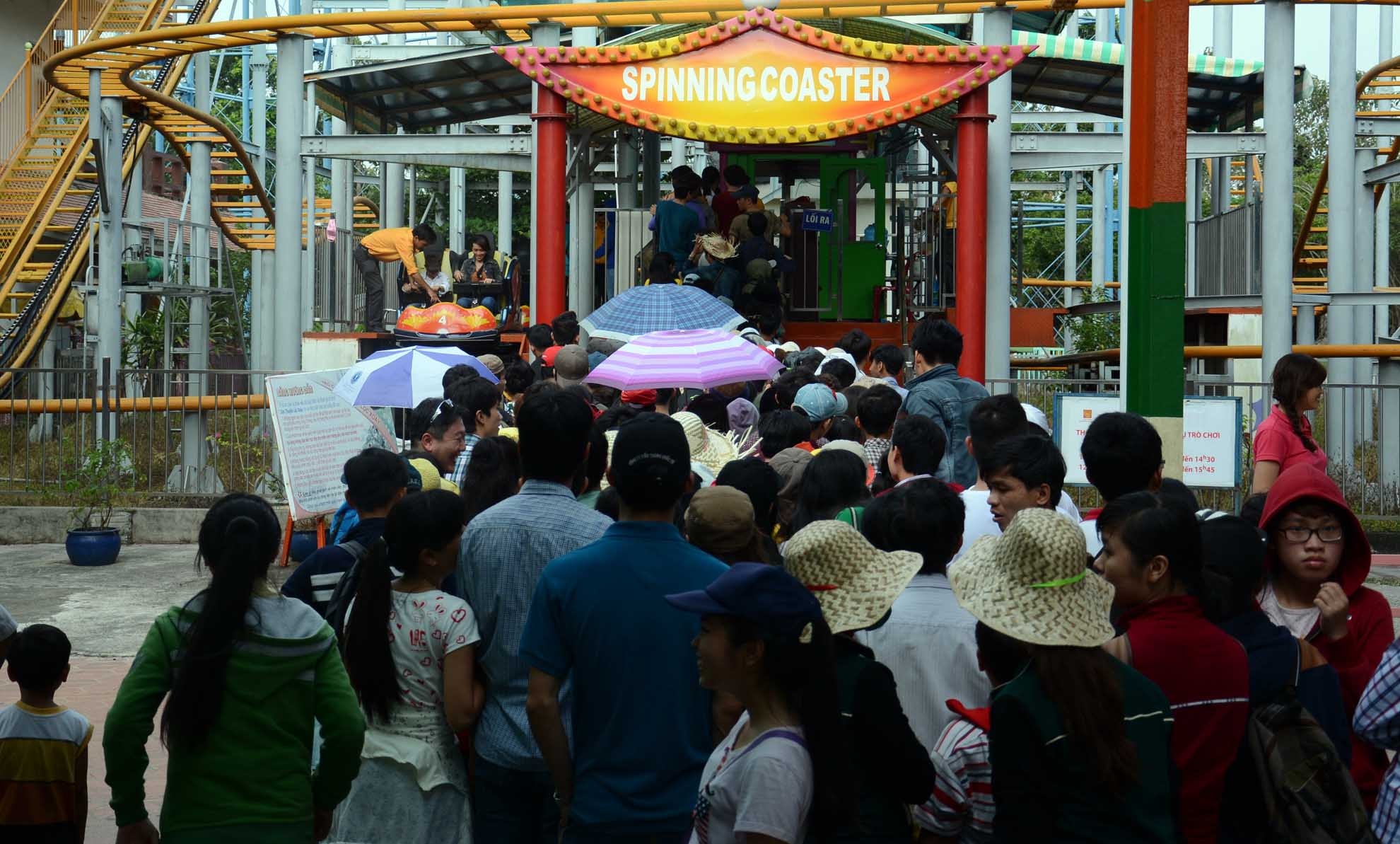 | Nhiều người tham gia các trò chơi phải xếp hàng dài chờ đợi để đến lượt chơi. |