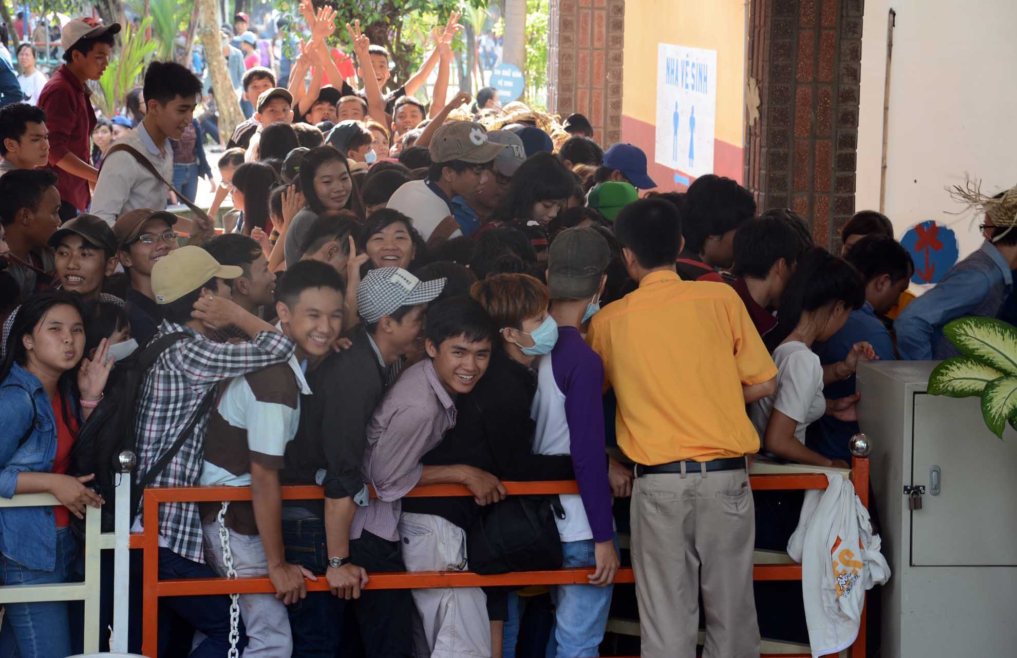 | Chen lấn, xô đẩy nhau đến nghẹt thở khiến các nhân viên khu du lịch phải liên tục nhắc nhở du khách. |