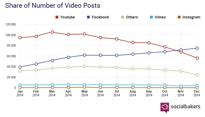 Theo số liệu của Socialbakers hồi tháng 1/2015, Facebook Video đã lớn hơn cả YouTube và có xu hướng tăng dần. |