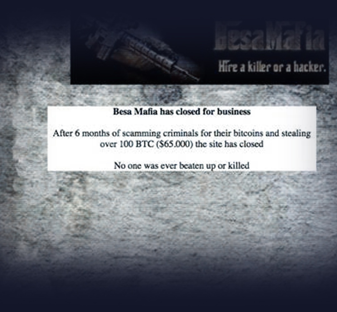 “Besa Mafia đã sập. Sau 6 tháng lừa đảo hơn 100 Bitcoin (khoảng 65 nghìn USD khi ấy), website chính thức ngưng hoạt động. Không ai bị đánh hay giết chết”, Chris gửi đến những tài khoản người dùng thông báo ngắn gọn sau khi đánh sập trang.