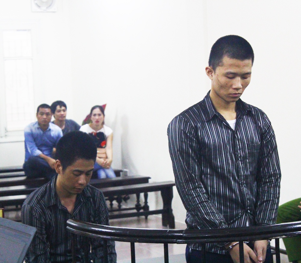 | Bị cáo Tuấn (đứng) và Thành hầu tòa sáng 6/8. |