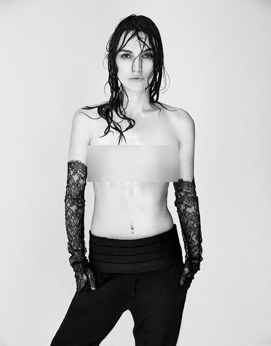 Trong bức ảnh chụp trên tạp chí Interview, Keira Knightley chẳng ngại phô diễn “vòng một” nhỏ bé, các đường cong không hoàn hảo như những bức đã được chỉnh sửa. Tuy nhiên, người đẹp này nói cô hài lòng với những gì mình có và tôn trọng nó.