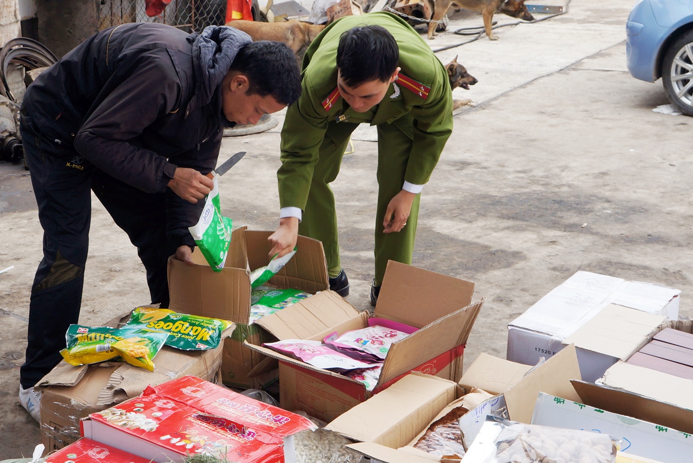 | Tài xế kiêm chủ hàng là Đỗ Tuấn Anh (34 tuổi, quê Nam Định) cho biết, trên xe chở nhiều mặt hàng phục vụ Tết như bánh kẹo, các loại hạt. Kiểm tra thực tế, cơ quan chức năng phát hiện nhiều hàng hóa không có hóa đơn chứng từ chứng minh nguồn gốc xuất xứ. Nhãn mác hàng thể hiện phần nhiều là đồ sản xuất ở Trung Quốc. |