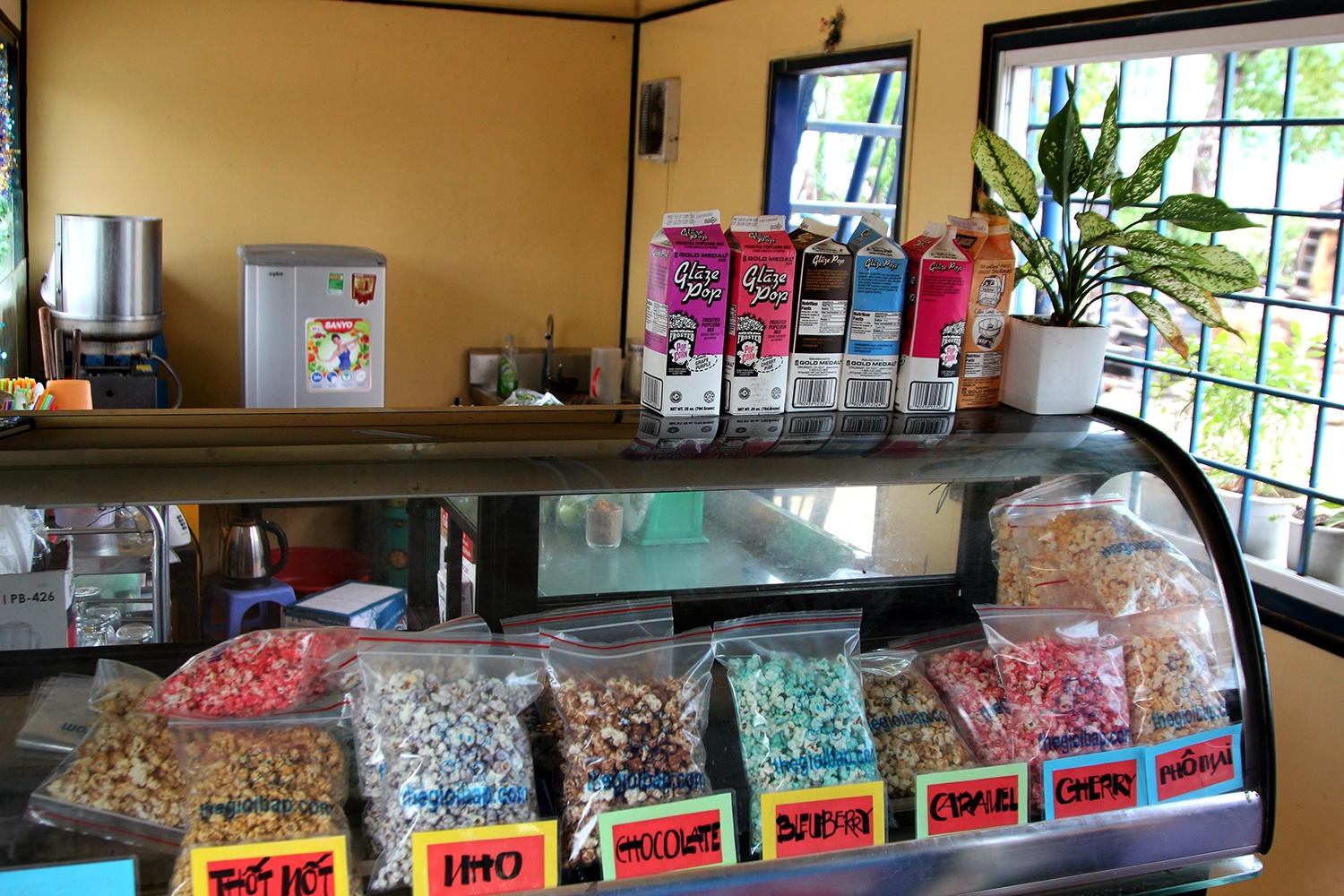 Giữa lúc kinh tế khó khăn, việc tìm kiếm mặt bằng kinh doanh hợp túi tiền tại TP.HCM là điều không đơn giản. Nhiều chủ đầu tư đã quyết định chọn những giải pháp mang tính tiết kiệm nhưng hết sức đột phá. Khá nhiều chiếc container cũ đã được thiết kế thành cửa hàng, quán nước tiện lợi. Trong ảnh là một cửa hàng bán bắp rang bơ trên đường Nguyễn Hữu Thọ, quận 7 được làm từ chiếc containner 20 feet .