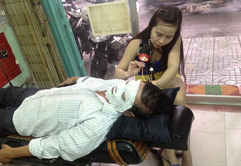 | Bên cạnh đó, nhiều khách đến không chỉ nhổ tóc bạc mà còn để đắp mặt nạ, lấy ráy tai... |