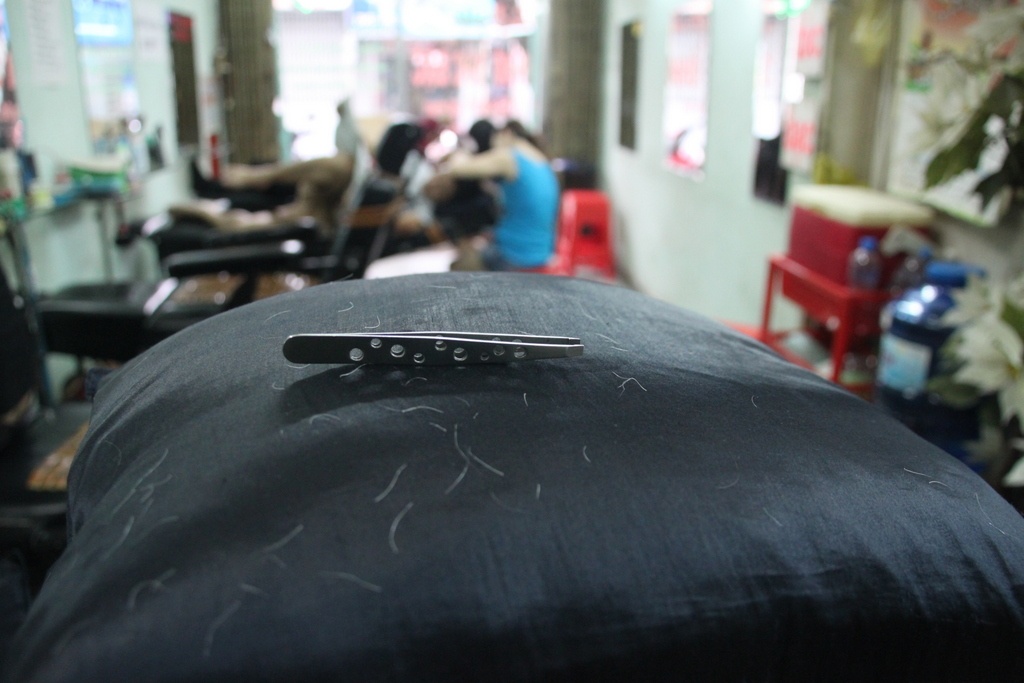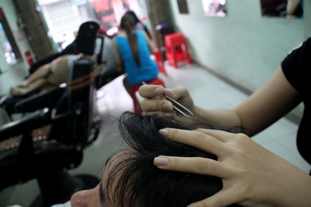 | Dụng cụ nhổ tóc bạc chỉ là cây nhíp, nhưng theo chủ quán quan trọng nhất là nhân viên phục vụ. Vì vậy việc tìm thợ cũng không hề đơn giản. Nhiều người tưởng dịch vụ không lành mạnh nên không dám làm. |