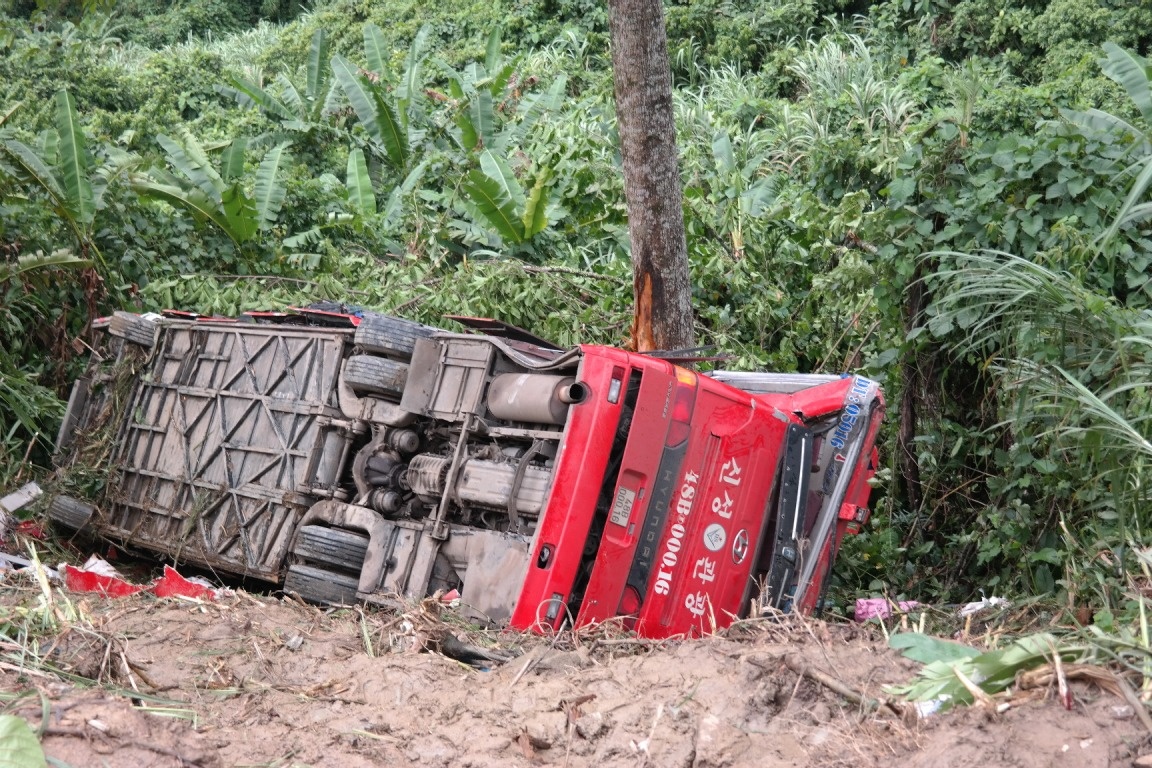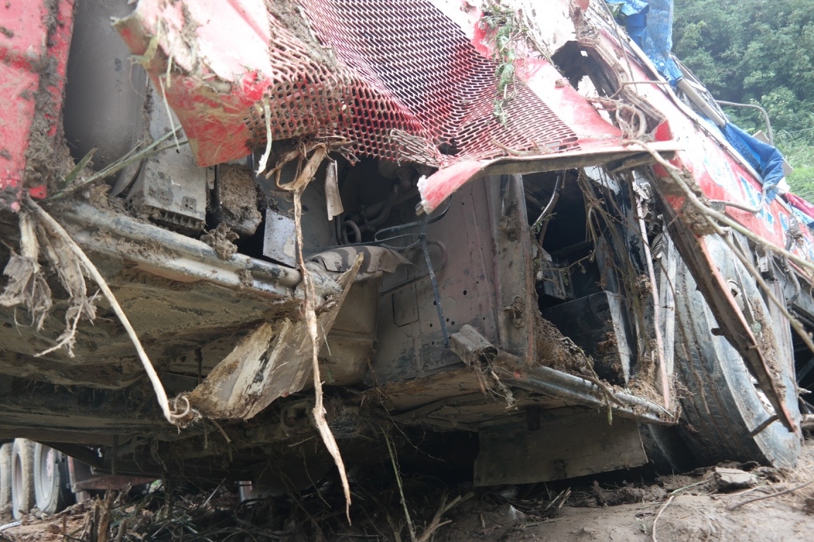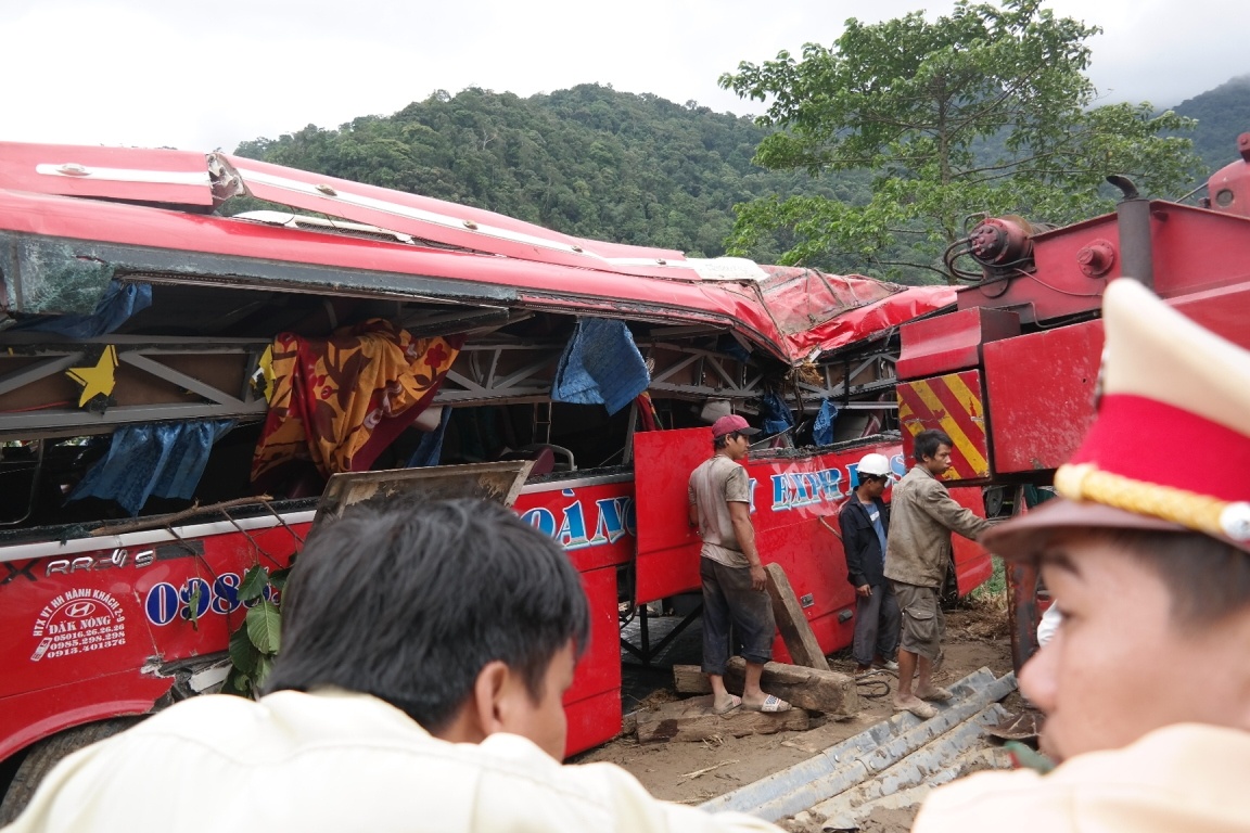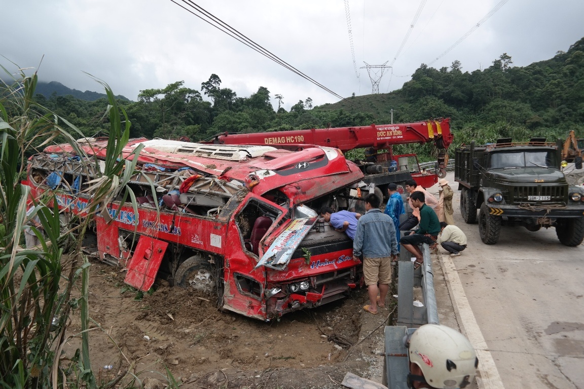 Sau hơn 20 giờ cứu hộ, các lực lượng chức năng đã kéo được ôtô khách giường nằm từ vực sâu hơn 100 m lên đường. Chiếc xe này bị hư hỏng nặng, nhiều bộ phận nát bét.