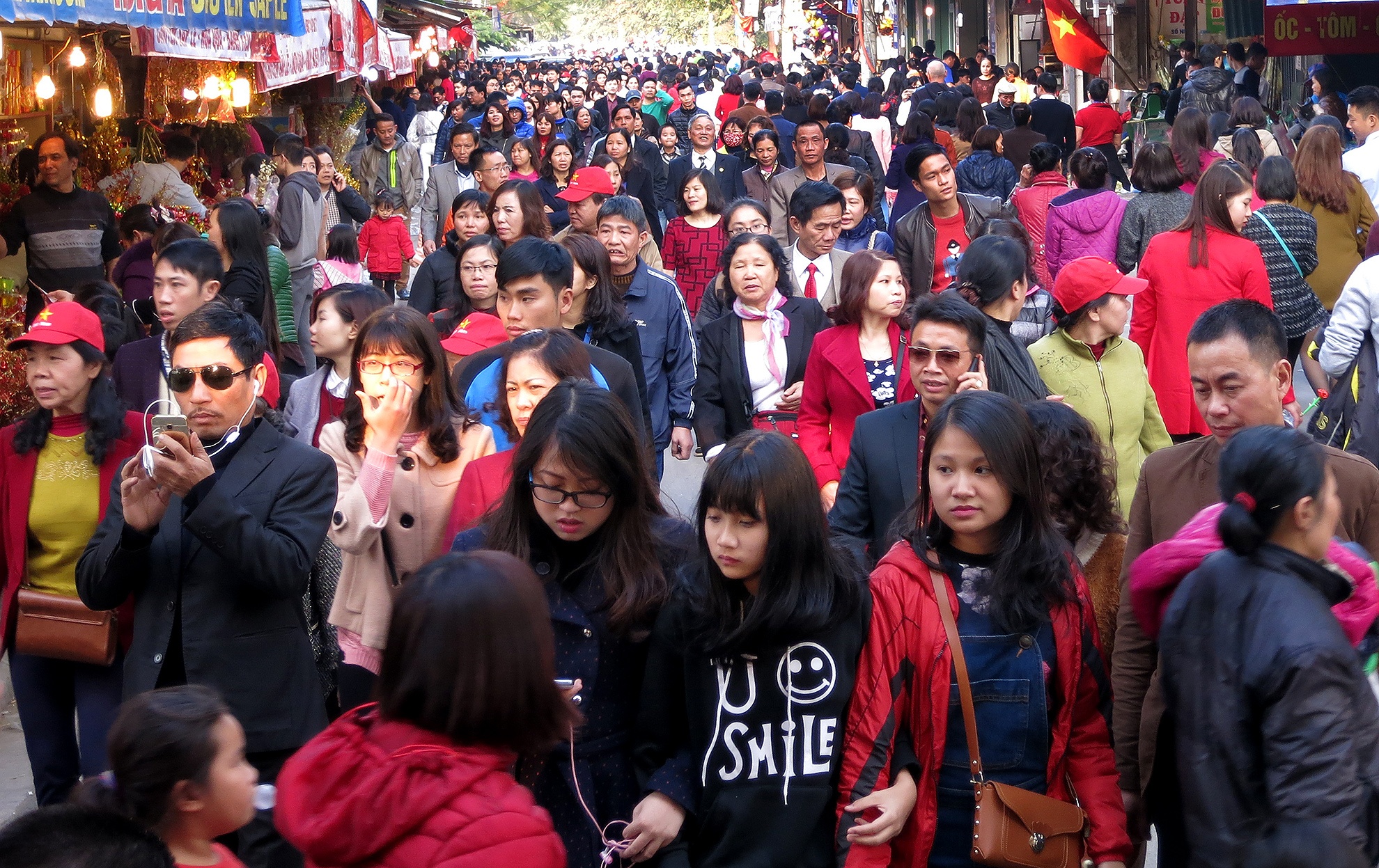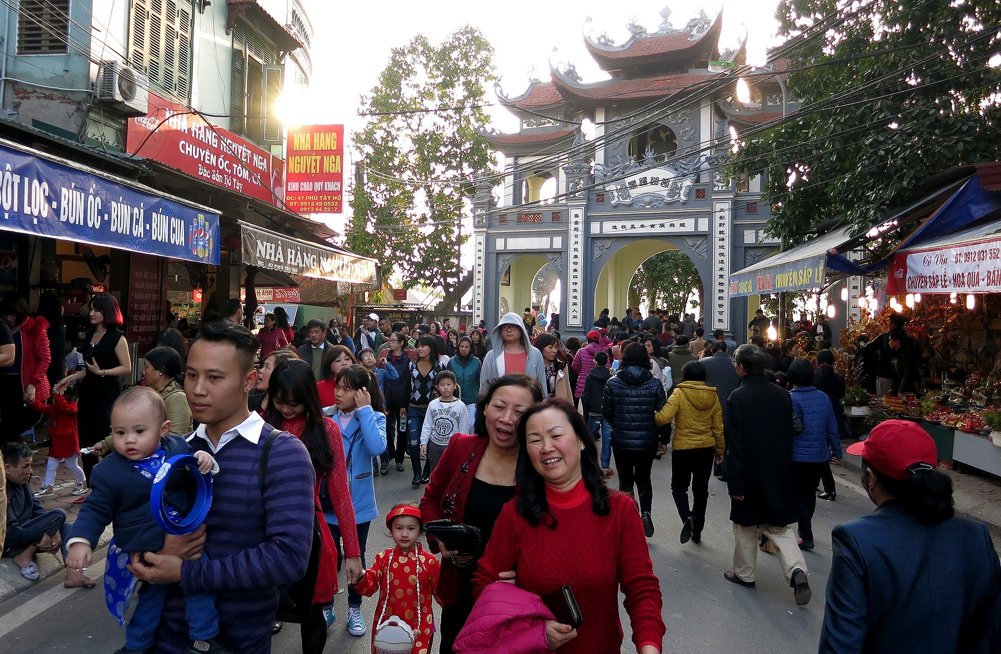 | Chiều 8/2 (mùng 1 Tết), hàng nghìn người dân đổ về phủ Tây Hồ đi lễ đầu năm khiến cho khu vực này chật cứng người. |