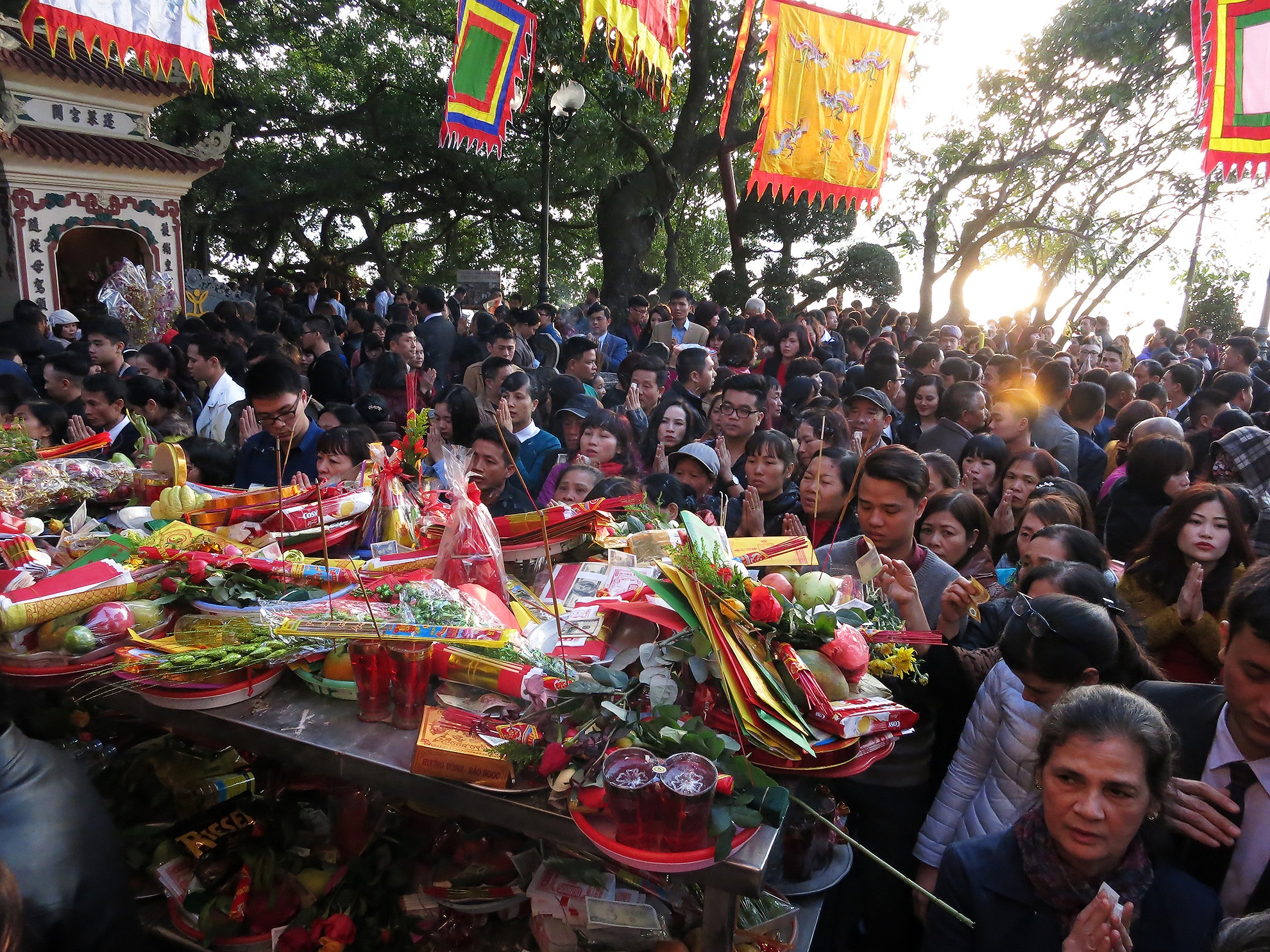 Người dân chen lấn tìm khoảng trống để làm lễ. |