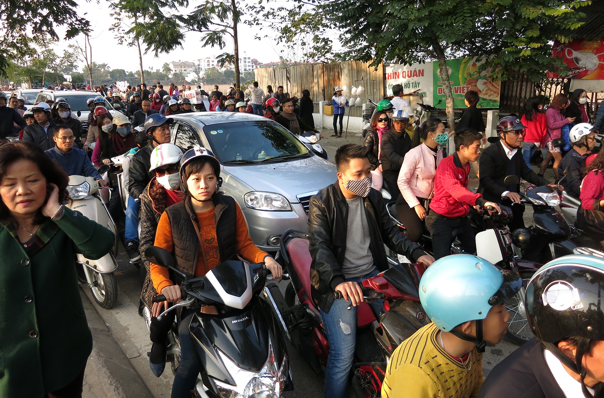 18h chiều, số lượng người đổ về phủ Tây Hồ càng đông hơn. |
