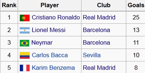 5 cầu thủ ghi bàn hàng đầu La Liga.