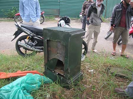 | Két sắt bị đục từ phía sau, bên trong không còn tài sản. |