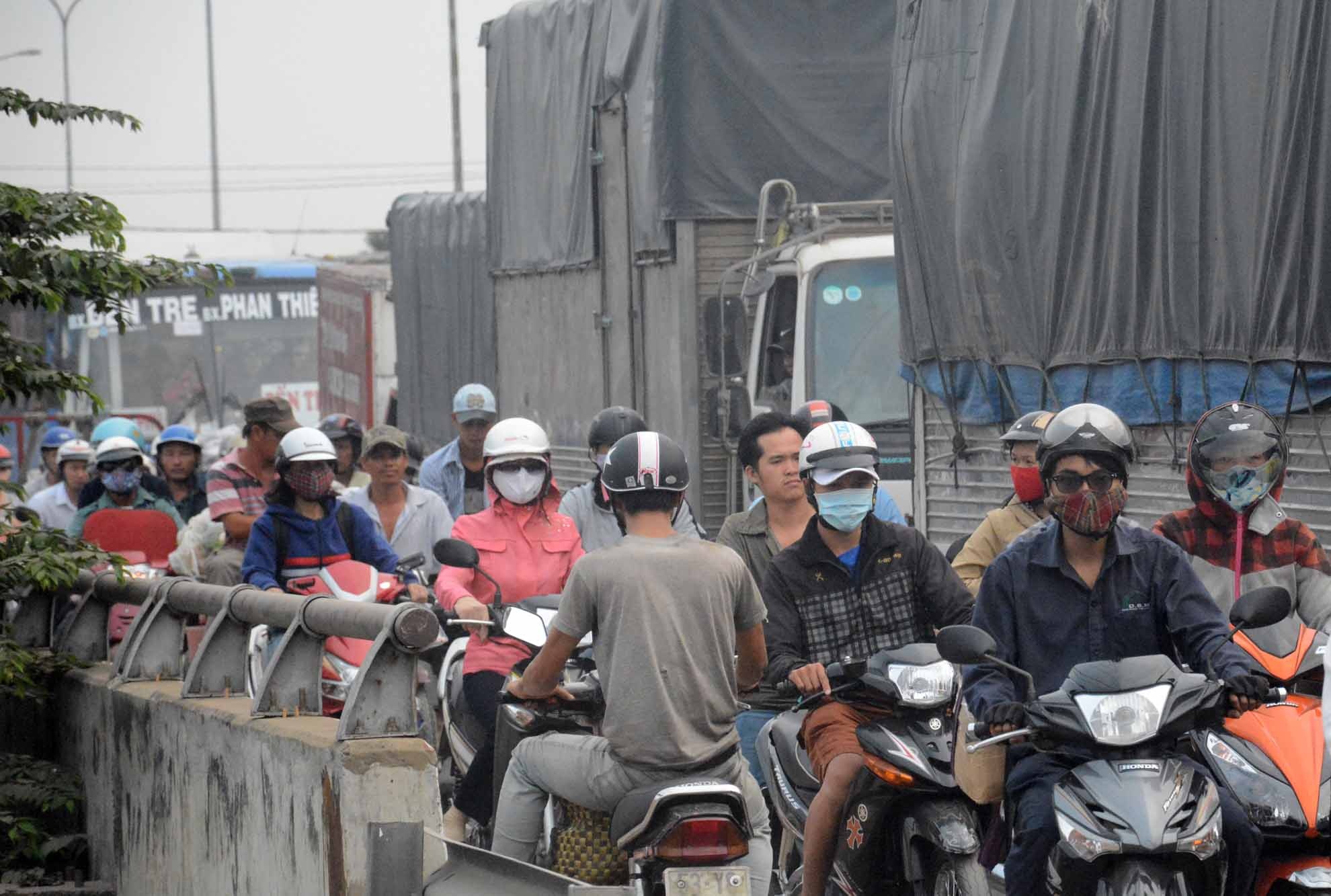 | Nhiều ôtô chạy lấn tuyến, còn các xe máy đi ngược chiều khiến việc lưu thông rất khó khăn. Nhiều người vì sợ trễ giờ làm, nên cố tình luồn lách. |
