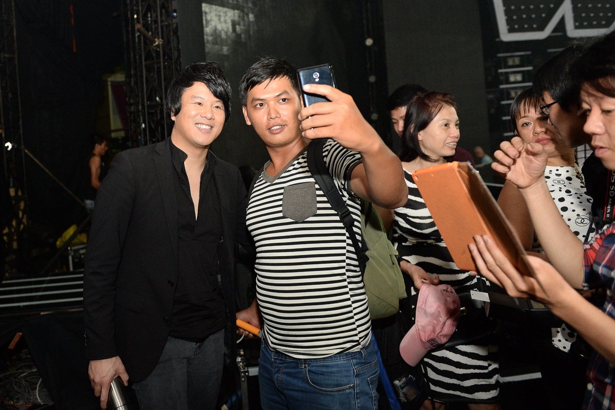 Thanh Bùi được người hâm mộ xin chụp ảnh sau khi chương trình kết thúc. |