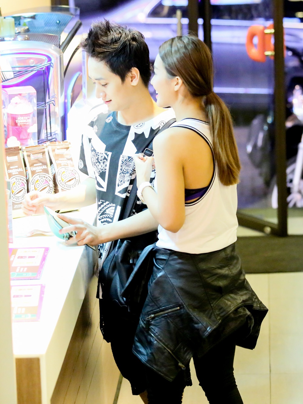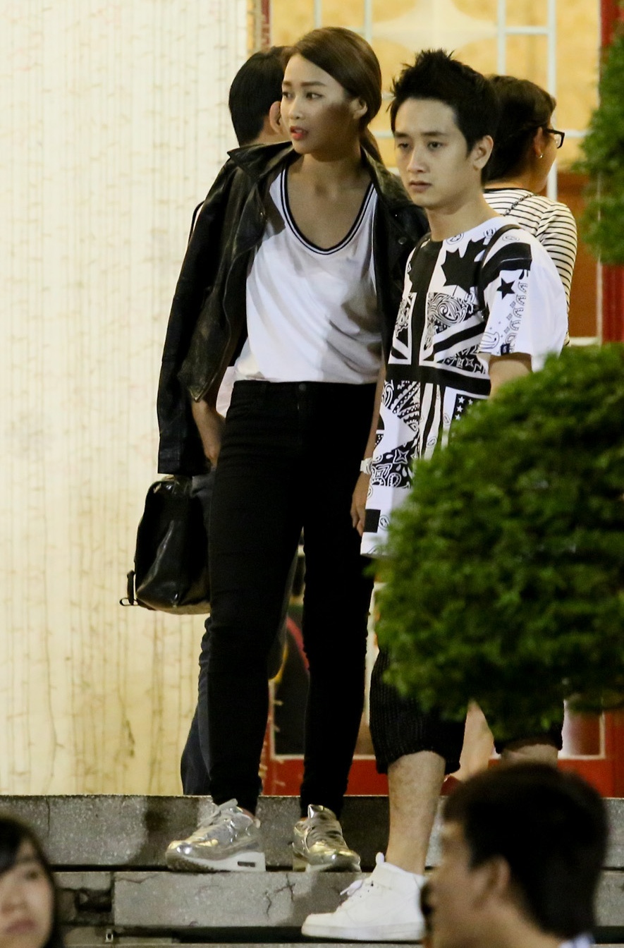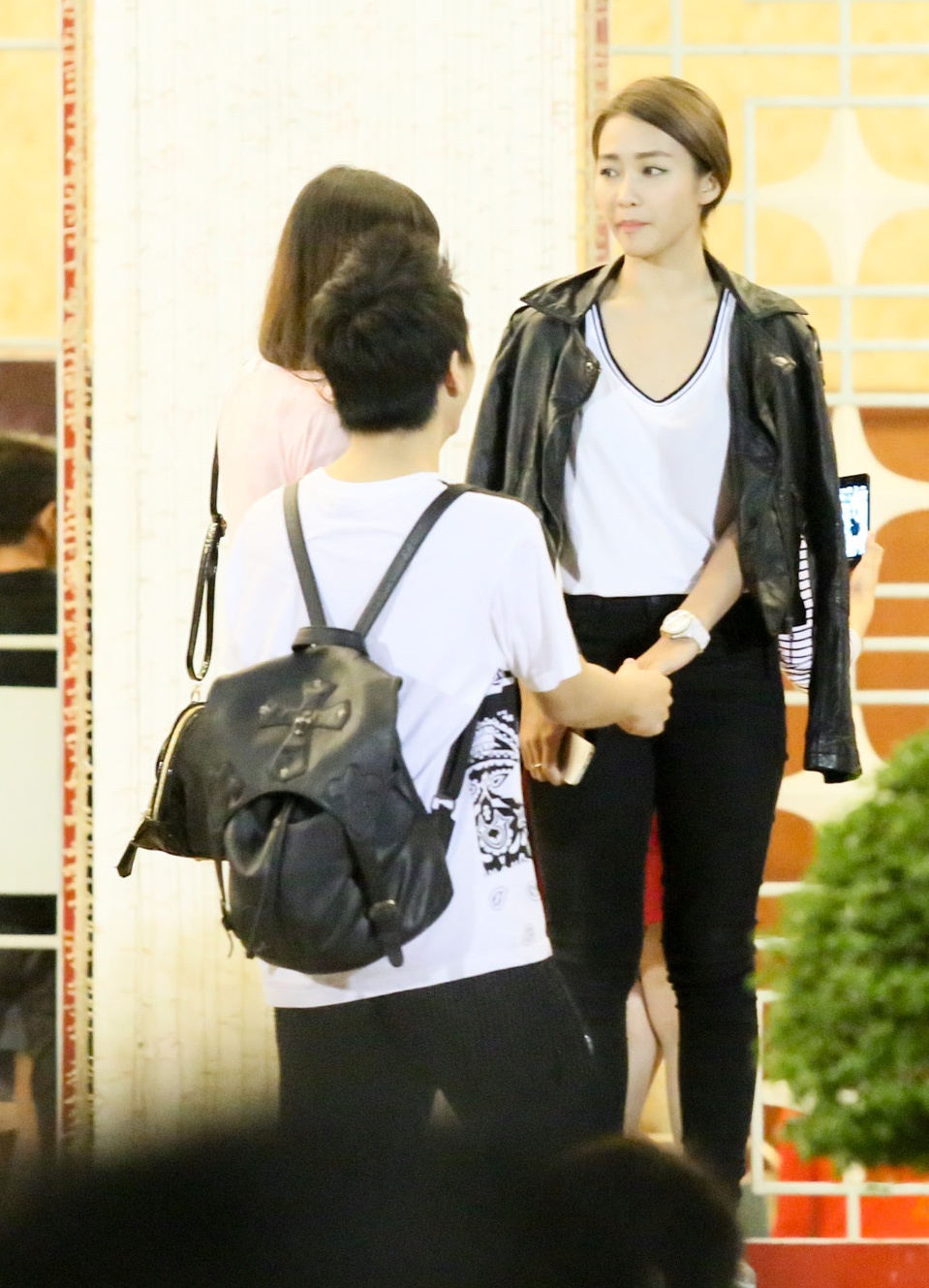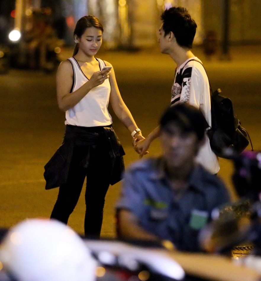 | Được bạn thân khác giới nắm tay, thể hiện tình cảm trước nơi công cộng nhưng Khả Ngân không ngại chuyện bị người khác hiểu lầm. |