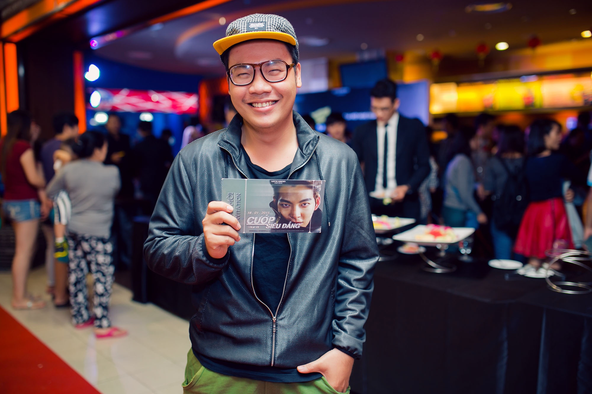 | Tối 16/1, Vũ Cát Tường có mặt trong buổi họp báo ra mắt phim bom tấn Hàn Quốc mang tên Cướp siêu đẳng. Đây là bộ phim có sự tham gia diễn xuất của nam diễn viên Kim Woo Bin - từng nổi đình đám khi góp mặt trong bộ phim Người thừa kế. |