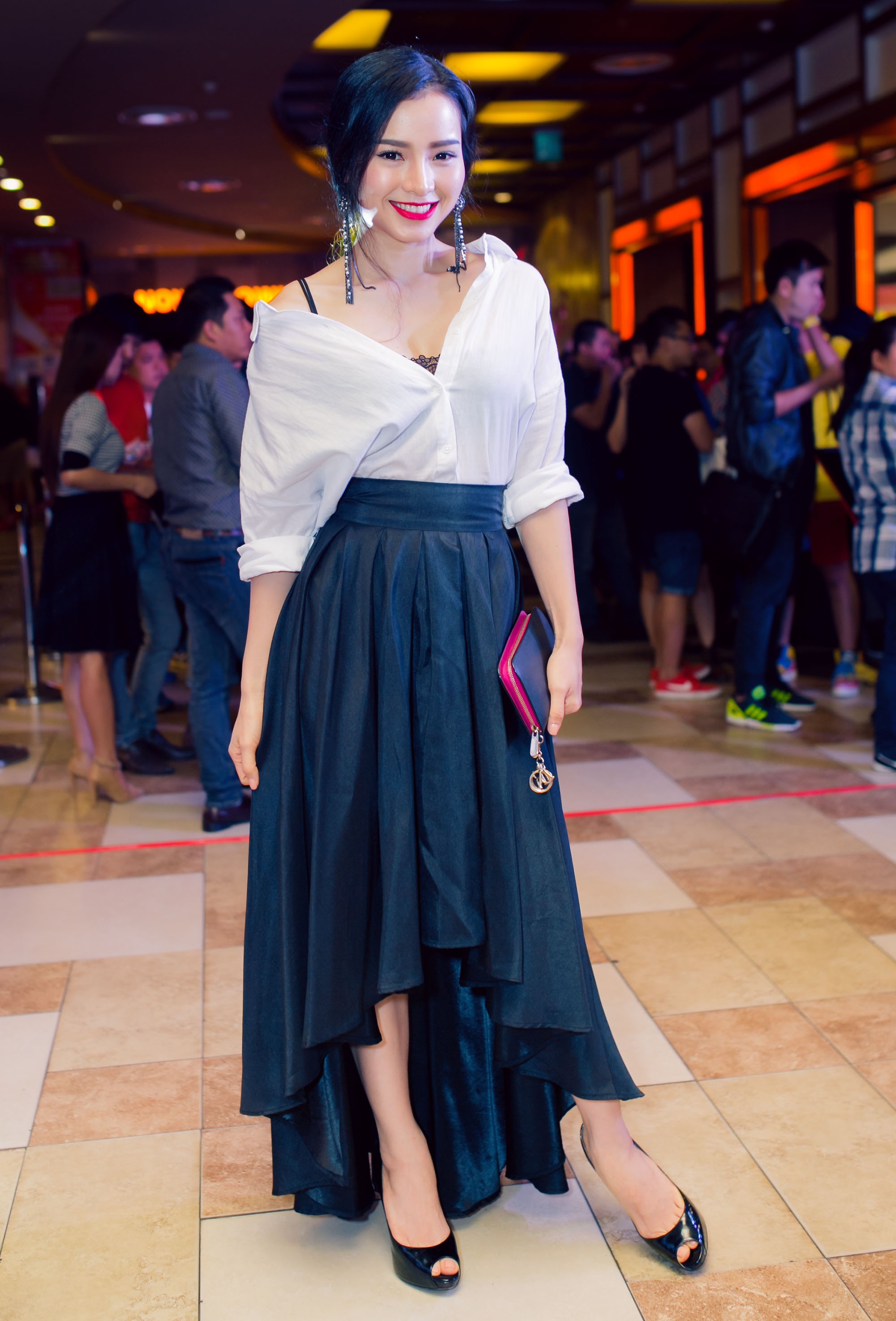 | Phương Trinh Jolie vai trần gợi cảm đi xem phim. |