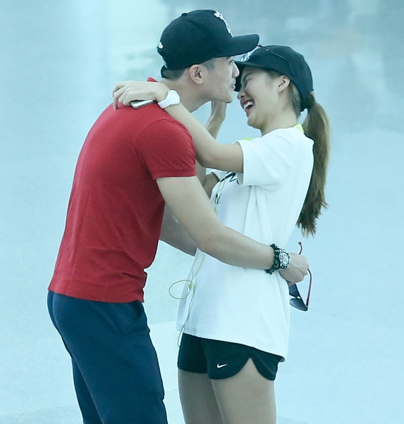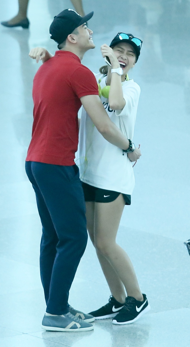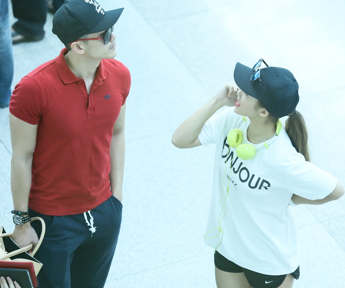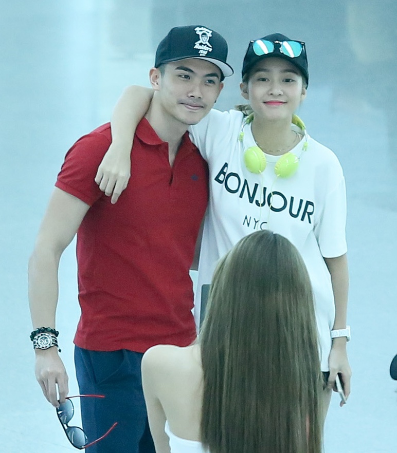 | Cặp đôi bịn rịn trước giờ chia tay. Họ được người mẫu Kỳ Hân chụp hình kỷ niệm. Dù vướng nhiều ồn ào xoay quanh chuyện tình cảm nhưng đây là lần đầu tiên Khả Ngân công khai thân mật bên một chàng trai. |