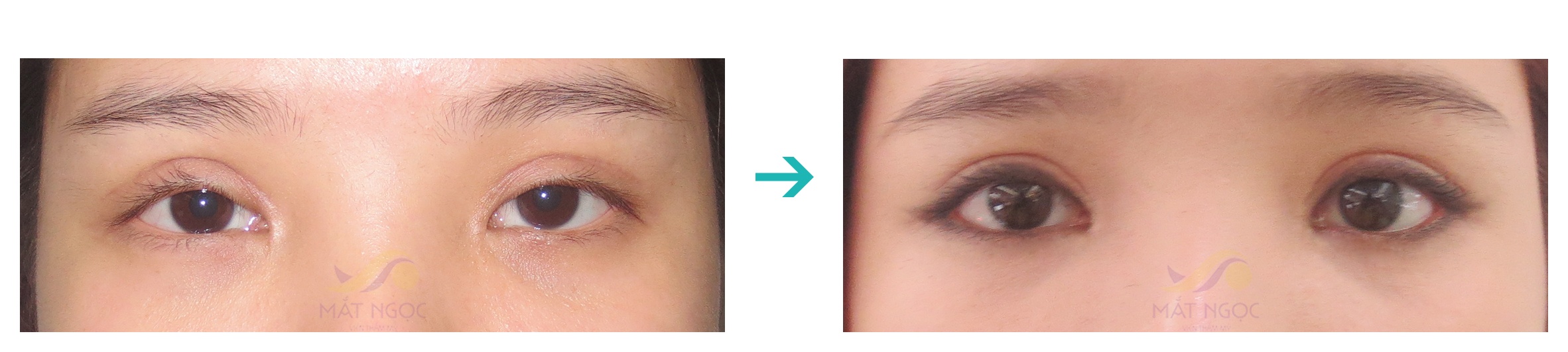 | Hình ảnh một trường hợp được thạc sĩ, bác sĩ Nguyễn Văng Việt Hảo thực hiện phẫu thuật mắt to trên một khách hàng đã phẫu thuật mắt bị hỏng. Trước mổ: mí to, sụp mi làm cho mắt nhìn không được tự nhiên. Sau mổ 2 tháng: mắt to tròn, mí nhỏ tự nhiên. |