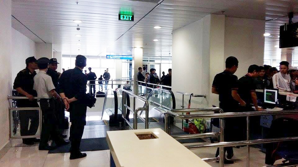 | Nhân viên an ninh sân bay đến giữ gìn trật tự. Ảnh: N.Thương. |