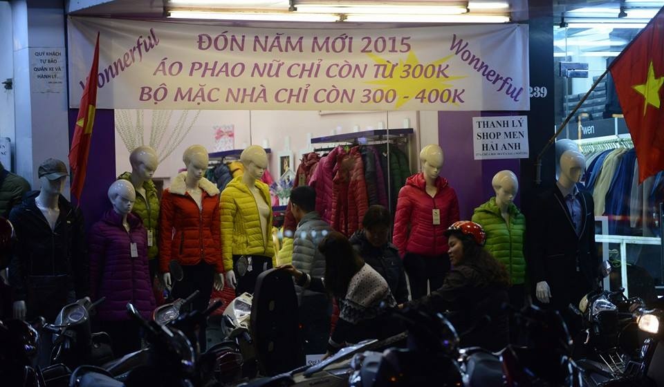 | ột chủ cửa hàng bán quần áo trên phố cho biết, kể từ chiều nay khách đến mua quần áo không đông như những ngày trước đó, dù cửa hàng liên tục tung ra các chiêu khuyến mại, giảm giá 50-70%. Ảnh: Lê Hiếu. |
