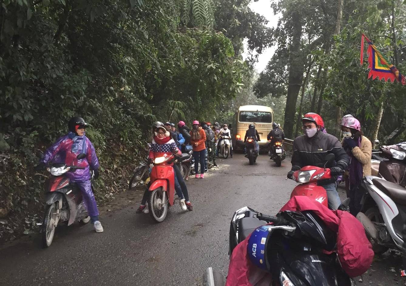 Nhiệt độ ngày càng xuống thấp, đường lên núi từ chiều tối tới đêm khá trơn, nhiều thân cây gãy rất nguy hiểm nhưng không ít nhóm khách vẫn nối nhau lên núi. Tại một số khúc quanh, khách dừng chân ngắm băng tuyết đông gây ra tắc đường. Để đảm bảo an toàn, kiểm lâm đã thông báo cho bộ phận bán và soát vé hạn chế lượng khách lên đỉnh núi khi trời tối muộn.