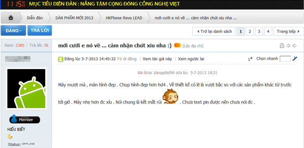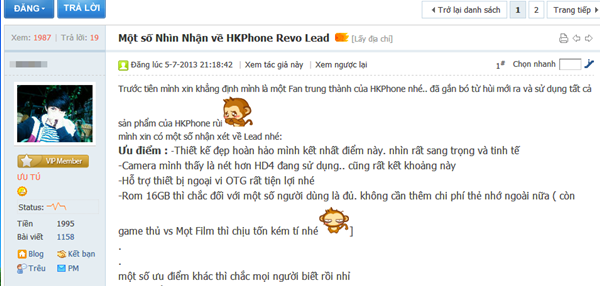 | Các thành viên trên diễn đàn đều dành cho Revo LEAD những lời khen ngợi. |