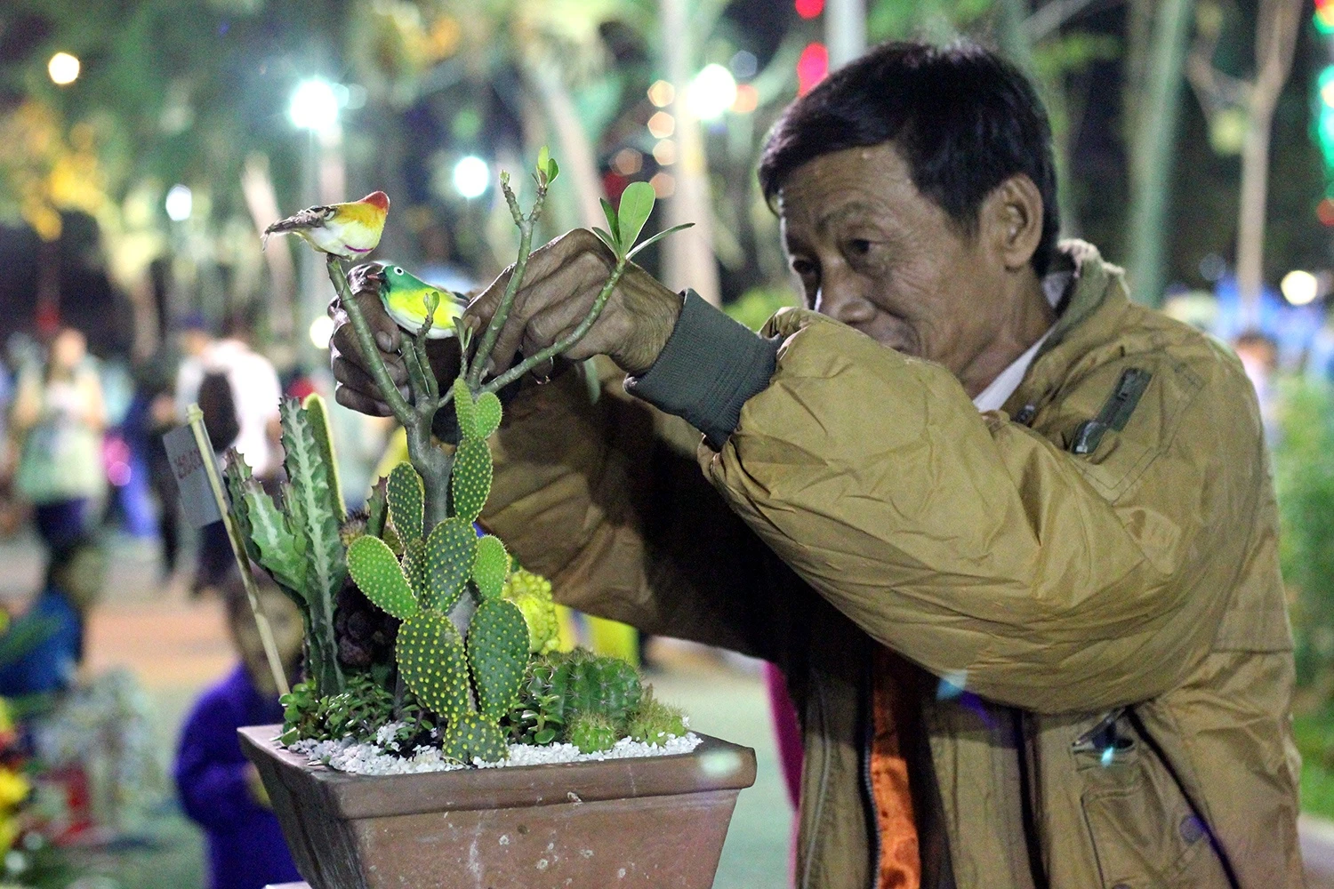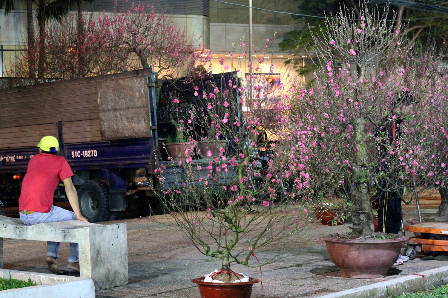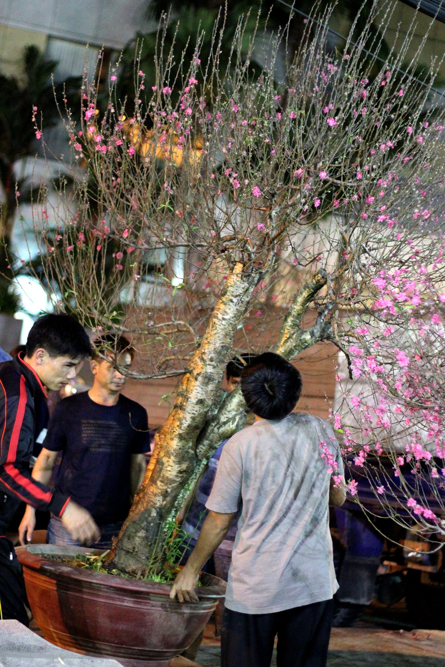 Những cây đào Nhật Tân vượt hơn 1.000 km về đến công viên 23/9, quận 1 vào chiều tối 11/2.