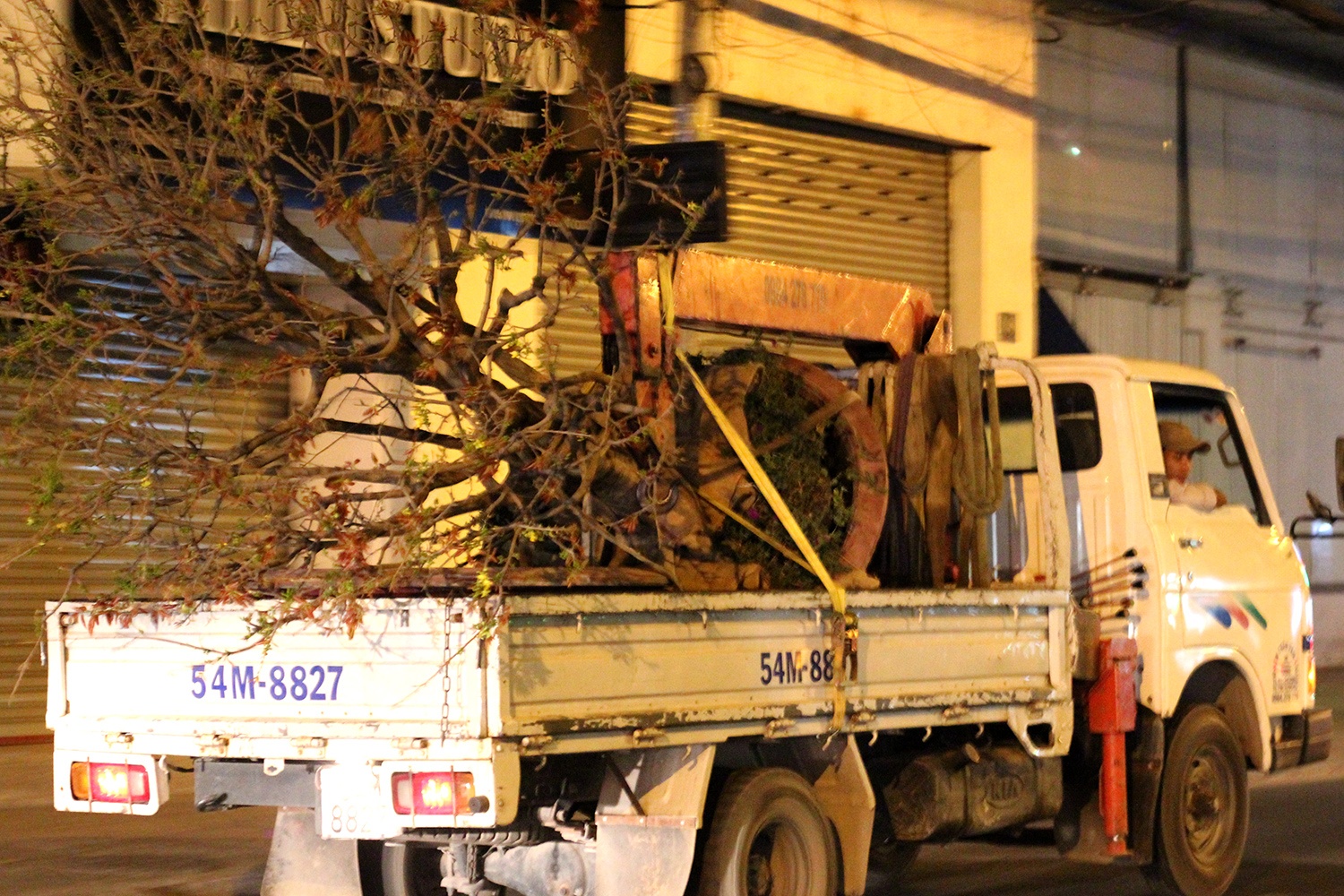 Ngoài đường, những chiếc xe chở hoa kiểng vẫn hối hả vận chuyển hoa về chợ.