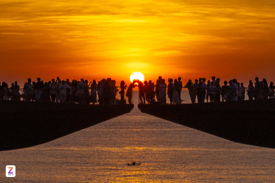 Cầu Hôn phủ kín du khách cùng chờ khoảnh khắc mặt trời chạm đường chân trời. Ảnh: Linh Huỳnh. |