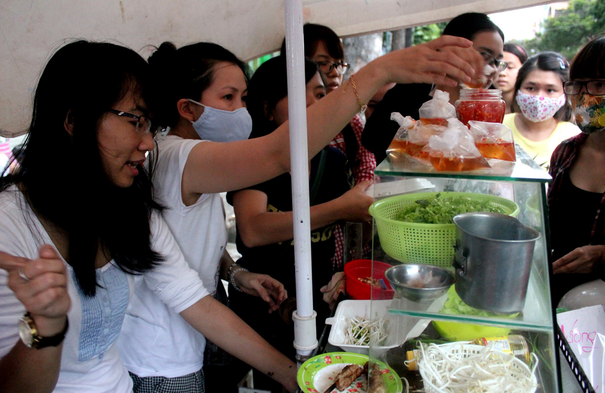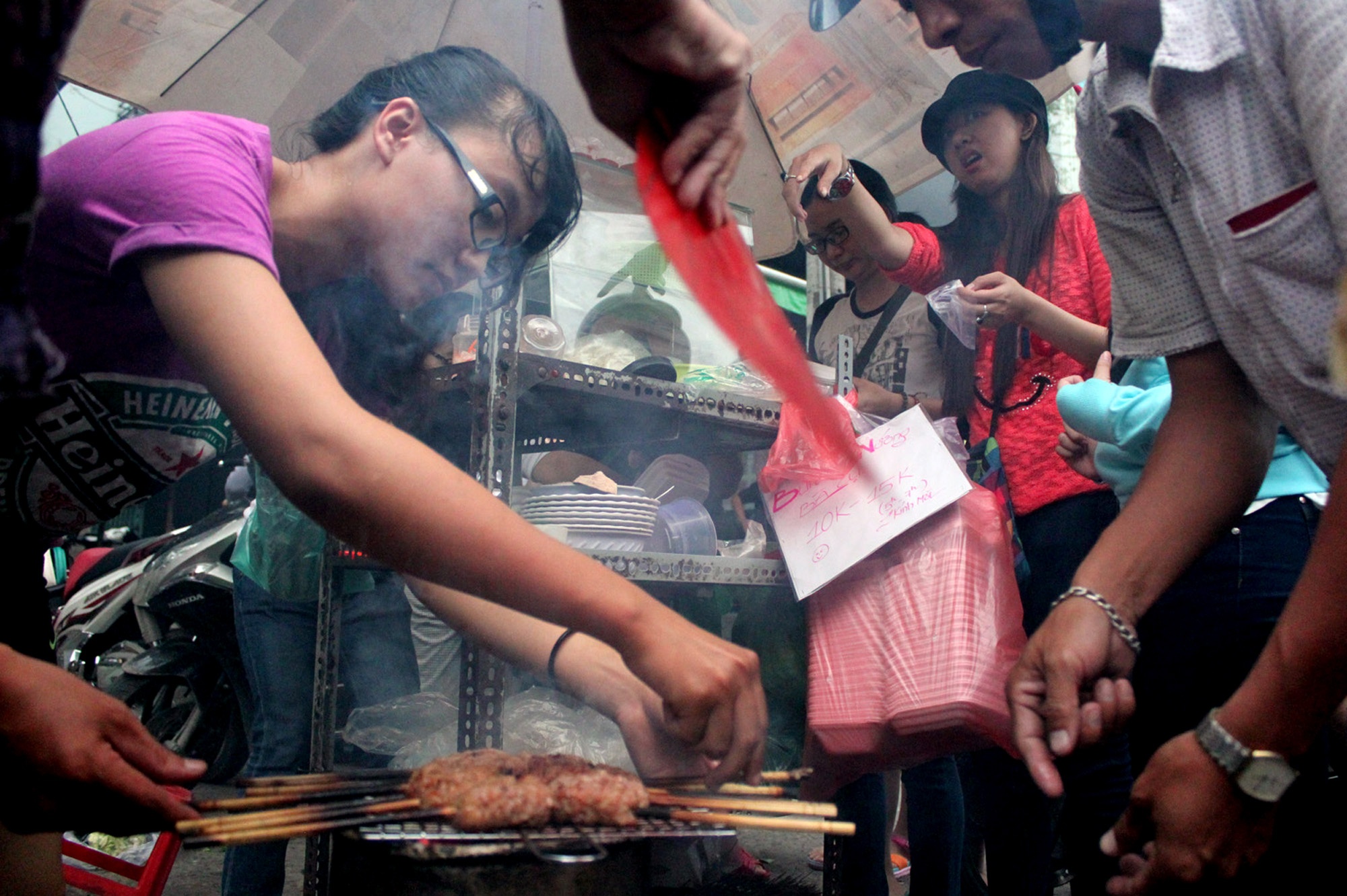 Những ngày này, từ khoảng 5h-6h chiều, con hẻm 589, đường Lê Hồng Phong, quận 10 luôn tấp nập khách tìm đến để mua bún thịt nướng của cụ Tám. Rất nhiều người phải chờ gần cả tiếng đồng hồ để mua.