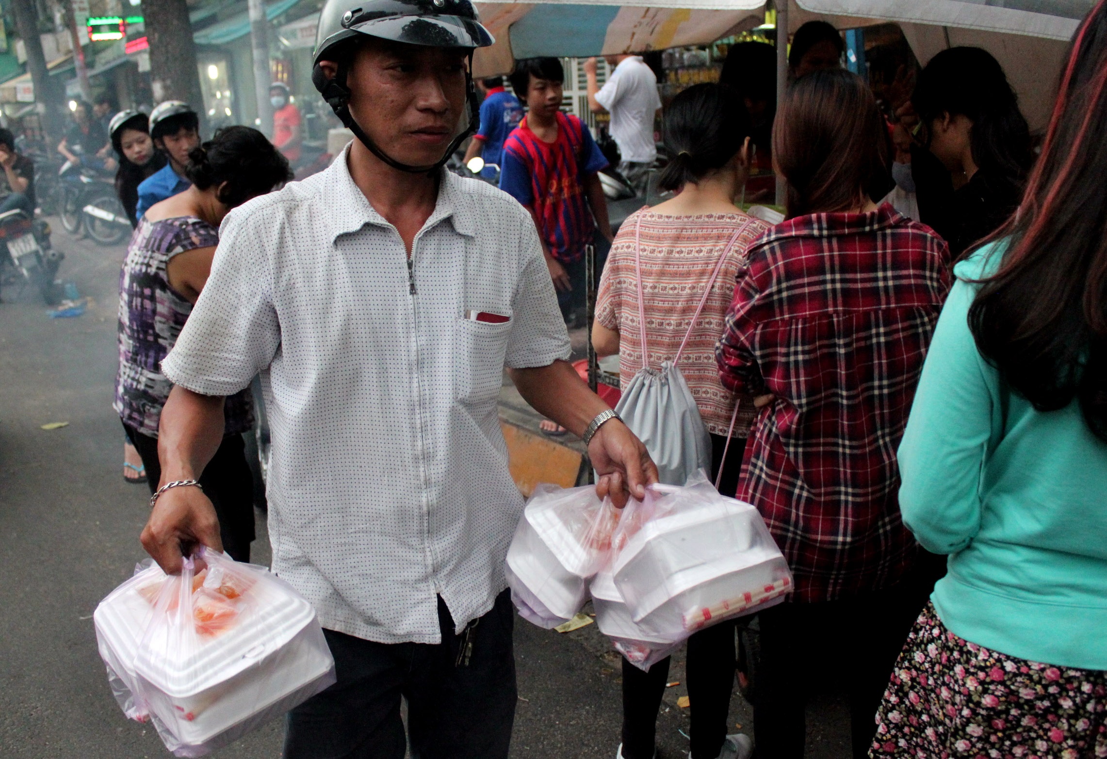 Một người bán giúp cụ Tám cho biết, những ngày qua, lượng khách tìm đến rất đông, trung bình mỗi buổi chiều đến tối bán được hàng trăm hộp bún.