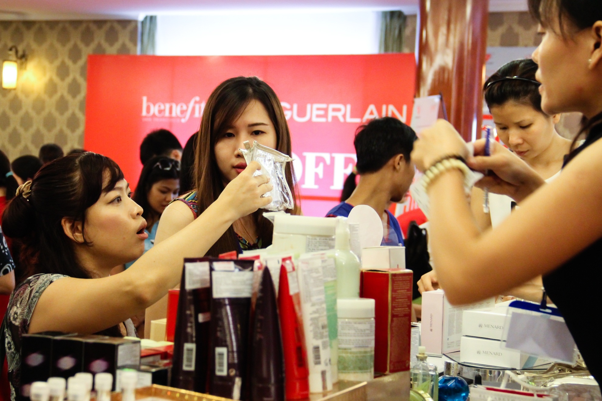 | Các hãng mỹ phẩm còn cho khách trải nghiệm sản phẩm ngay tại chỗ. |