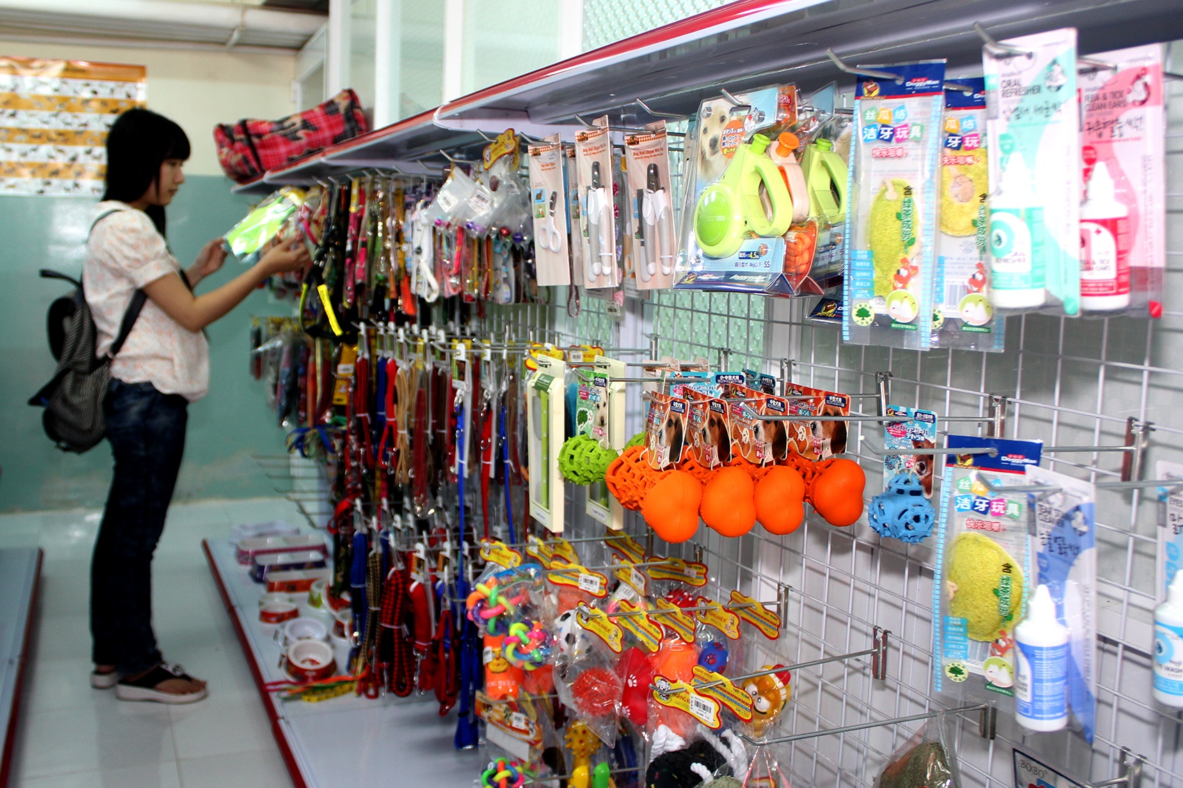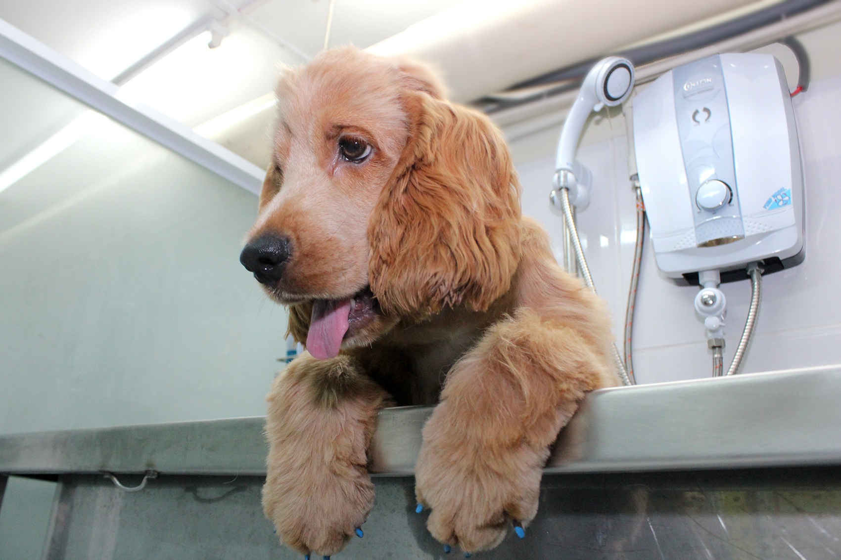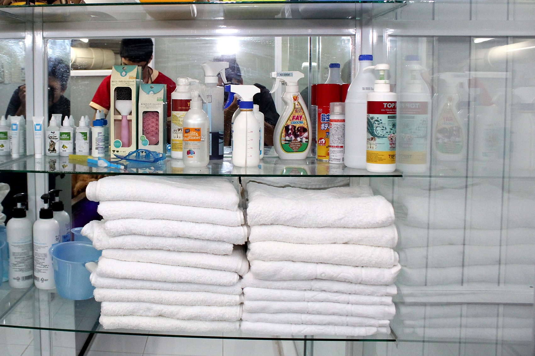 | Phòng tắm được trang bị rất nhiều loại hóa mỹ phẩm khác nhau dành cho thú cưng theo nhu cầu của chủ. |