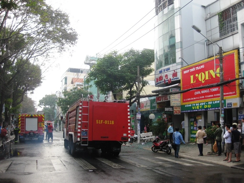 Vụ hỏa hoạn xảy ra lúc 11h ngày 28/12 tại khách sạn Trường Hải, số 134 đường Trương Công Định, P.14, Q.Tân Bình, TP.HCM.