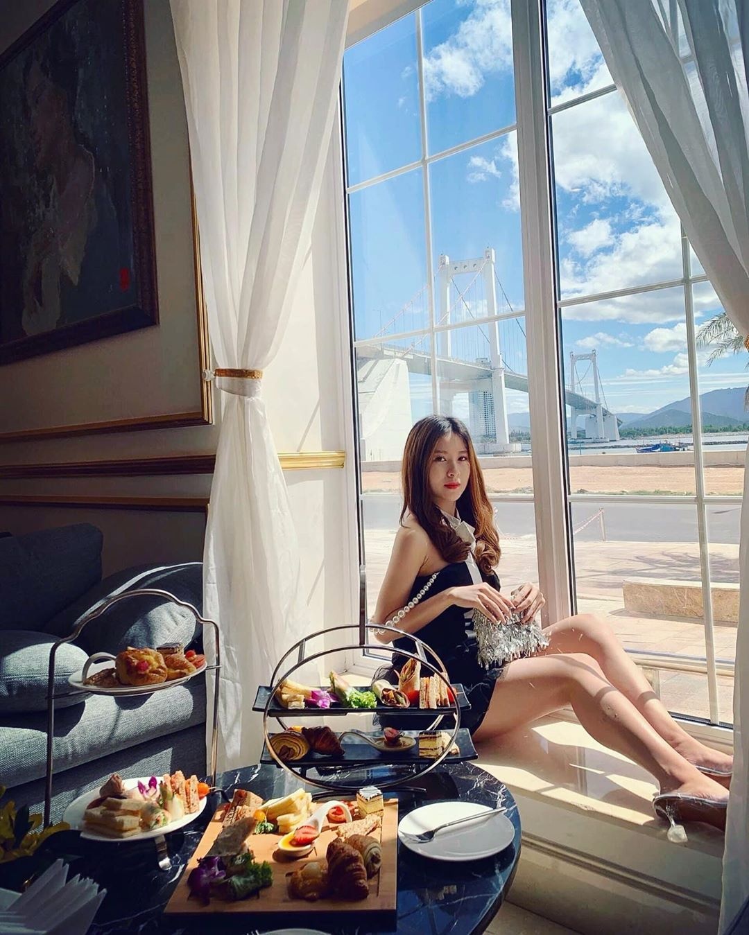 Sở hữu hồ bơi vô cực dát vàng 24K đầu tiên ở Việt Nam, Golden Bay là không gian nghỉ dưỡng sang chảnh được lòng giới trẻ khi đến Đà Nẵng. Từ đây, bạn có thể thu vào tầm mắt cây cầu Thuận Phước và toàn bộ thành phố biển từ trên cao trong lúc đắm mình trong làn nước mát. Với thiết kế sang chảnh, mới lạ, đây là địa điểm lên hình của nhiều tín đồ "sống ảo". Ảnh: Doitforicecream, thuphuongggg_. |
