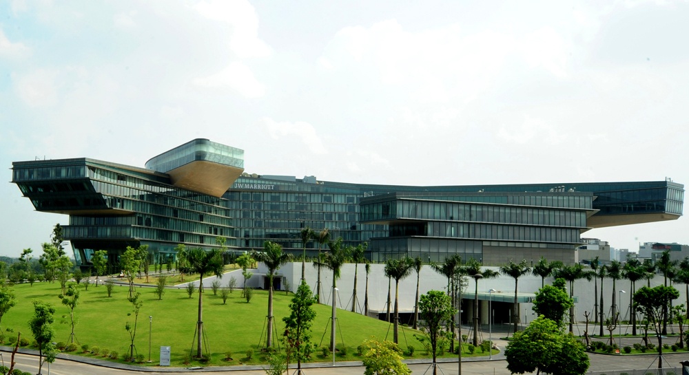 Khách sạn 5 sao này nằm trong tổ hợp Trung tâm hội nghị Quốc gia và hội trường Ba Đình mới tại quận Nam Từ Liêm (Hà Nội). Ảnh: Hoàng Hà.