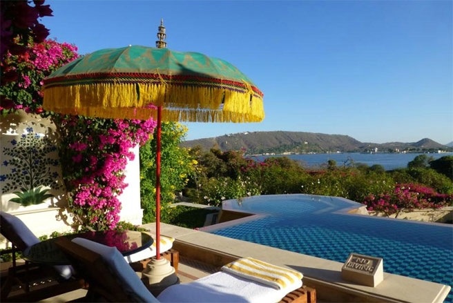 | Một số phòng trong khách sạn này có bể bơi riêng và hướng nhìn ra hồ Pichola gần đó. |