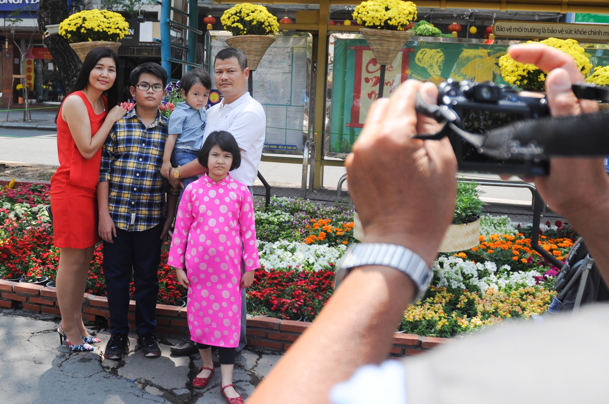 | Các gia đình người Sài Gòn ăn mặc thật đẹp đi thăm đường hoa xuân như một lệ thường niên. |