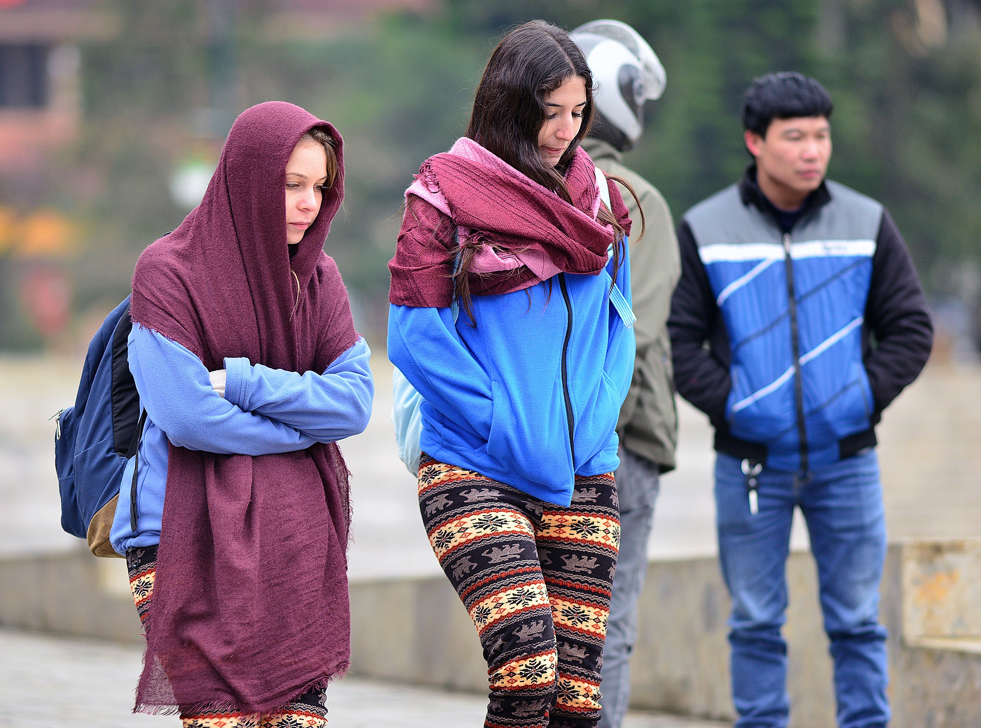 | Hình ảnh tại thị trấn Sapa (Lào Cai) lúc 14h chiều 16/12. Giá rét 6 độ C khiến các du khách đến từ xứ lạnh cũng phải chào thua cái lạnh buốt khó chịu của Việt Nam. |