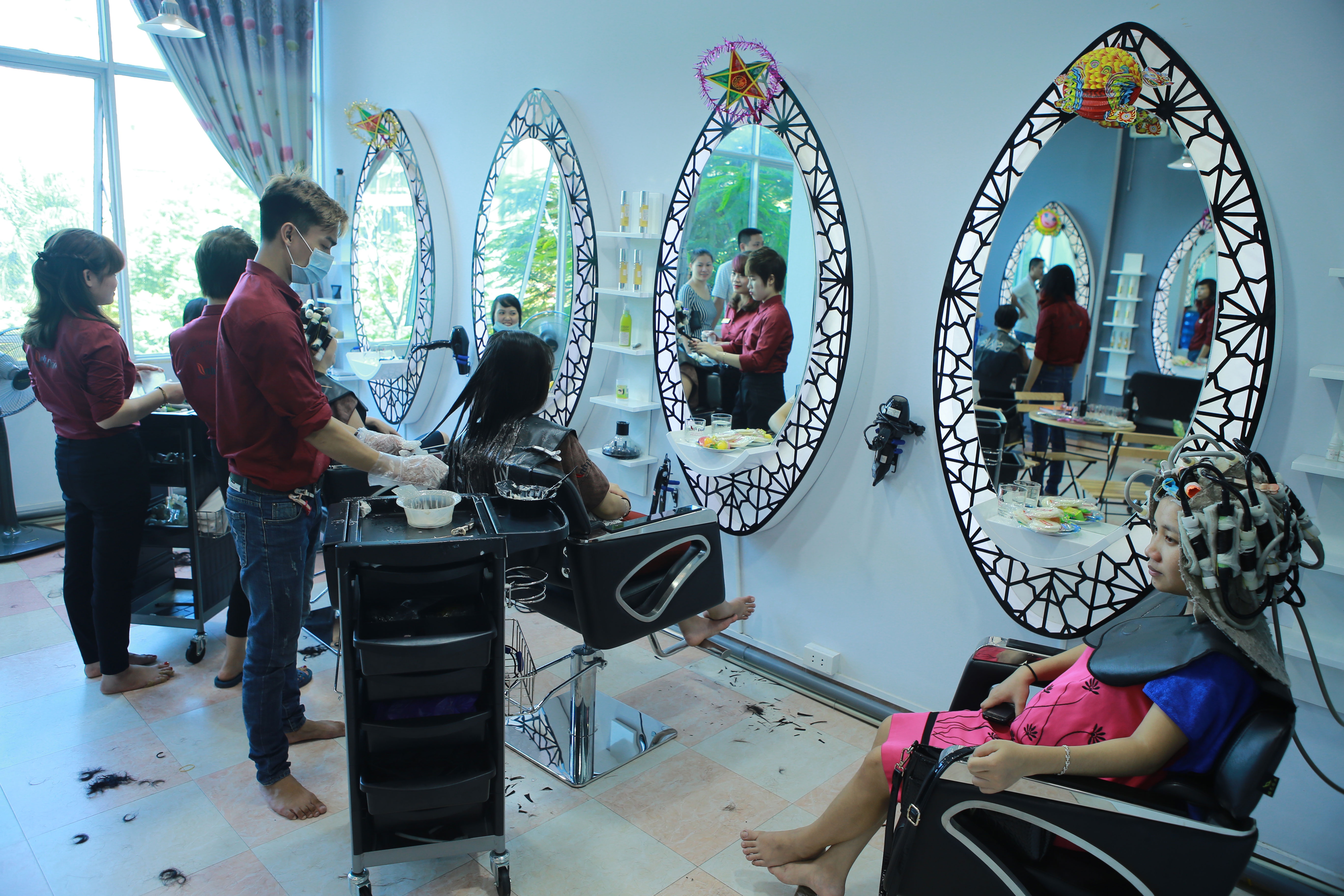 | Ngoài làm tóc miễn phí cho khách tên Trung và Thu, đơn vị này còn tổ chức cho khách phá cỗ tại salon. Ảnh: Ngọc Lan. |