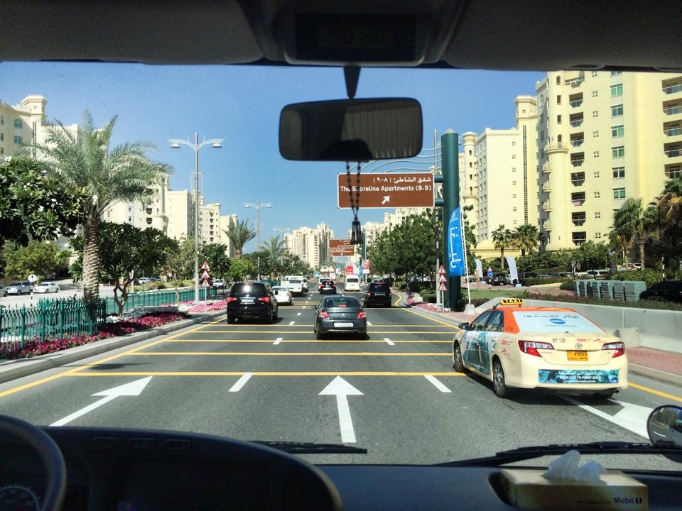| Từ trên xe taxi đi dọc đường chính mô phỏng thân cây chà là trong quần thể đảo nhân tạo chà là, du khách Việt Nam được người dân bản địa chia sẻ nhiều câu chuyện lý thú về những công trình bất động sản nhân tạo không tưởng ở Dubai. Ảnh: Nguyễn Hà. |