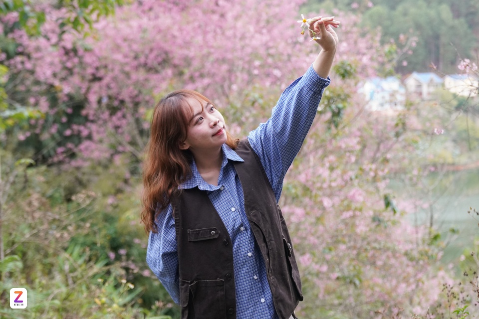 Du khách đến từ TP.HCM "săn" ảnh mai anh đào Đà Lạt dịp Tết Nguyên đán 2025. Ảnh: Linh Huỳnh. |