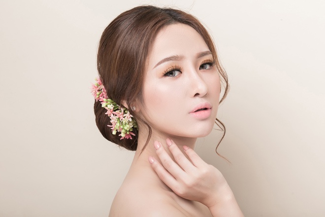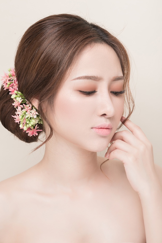 | Trong bộ ảnh mới vừa ra mắt, chuyên gia Khải Thiên chọn phong cách trang điểm nhẹ nhàng, thanh khiết giúp người mẫu Ngọc Anh Anh tỏa sáng. |
