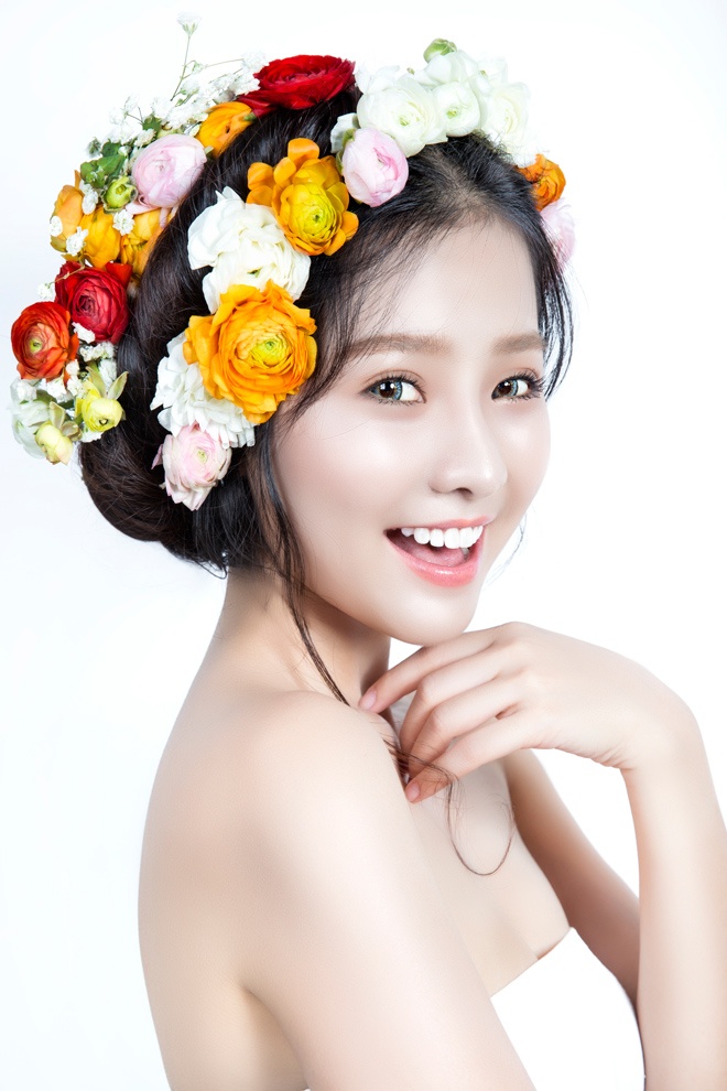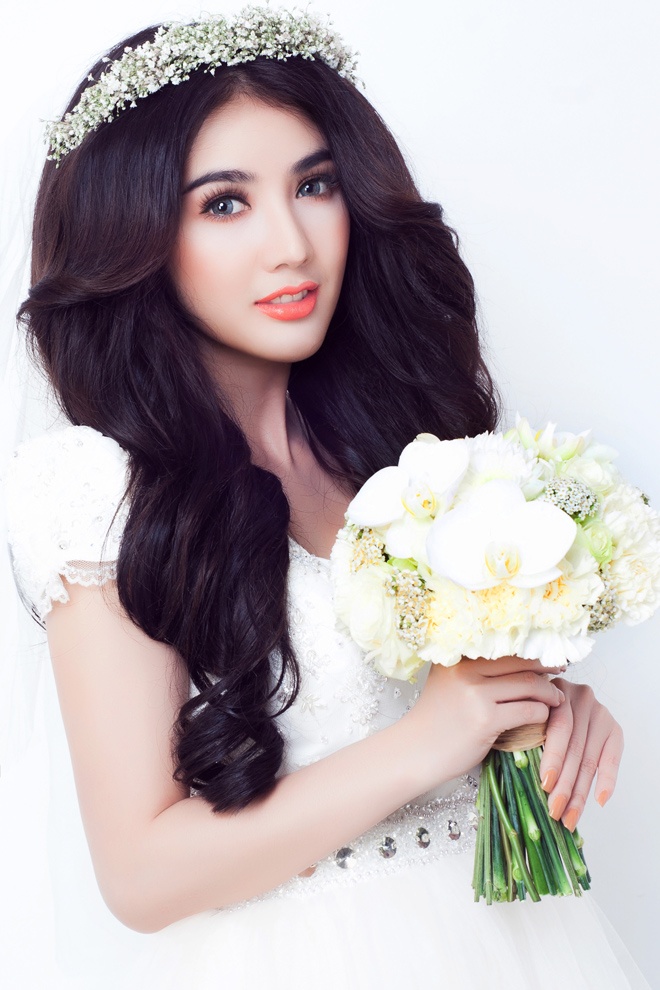 | Linh Napie làm cô dâu xinh đẹp với tông trang điểm sắc cam tươi. |