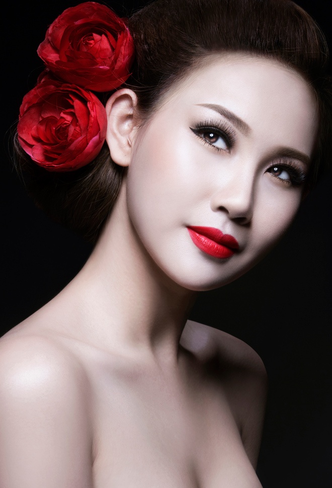 | Thanh Trúc - Nữ hoàng trang sức 2012 đẹp quyến rũ với tông trang điểm sắc đỏ. |