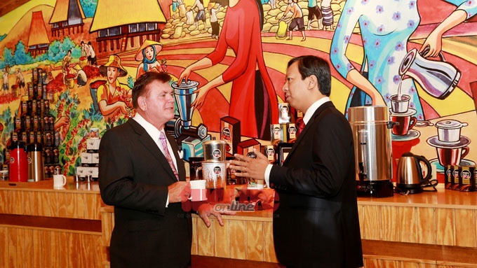 | Tân thị trưởng Phạm Đình Nguyên cùng cựu thị trưởng Don Sammons đã chính thức khai trương thị trấn cà phê Việt PhinDeli. |