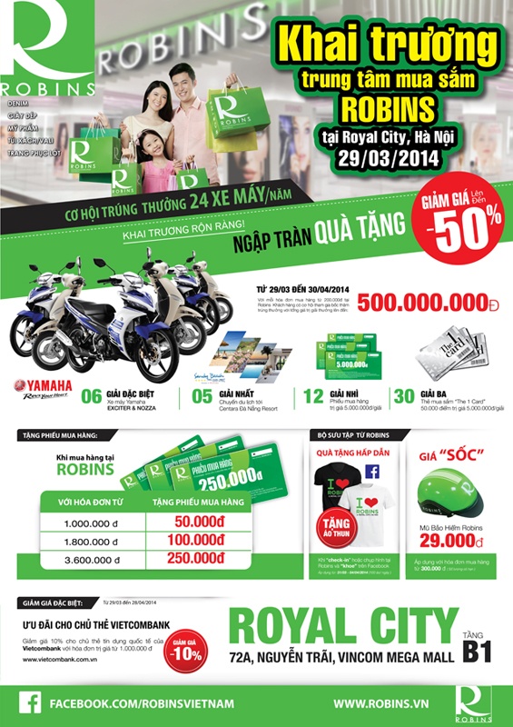 Từ 29/3 đến 30/4 đến mua sắm tại trung tâm mua sắm Robins để tận hưởng ưu đãi hấp dẫn dành cho bạn.