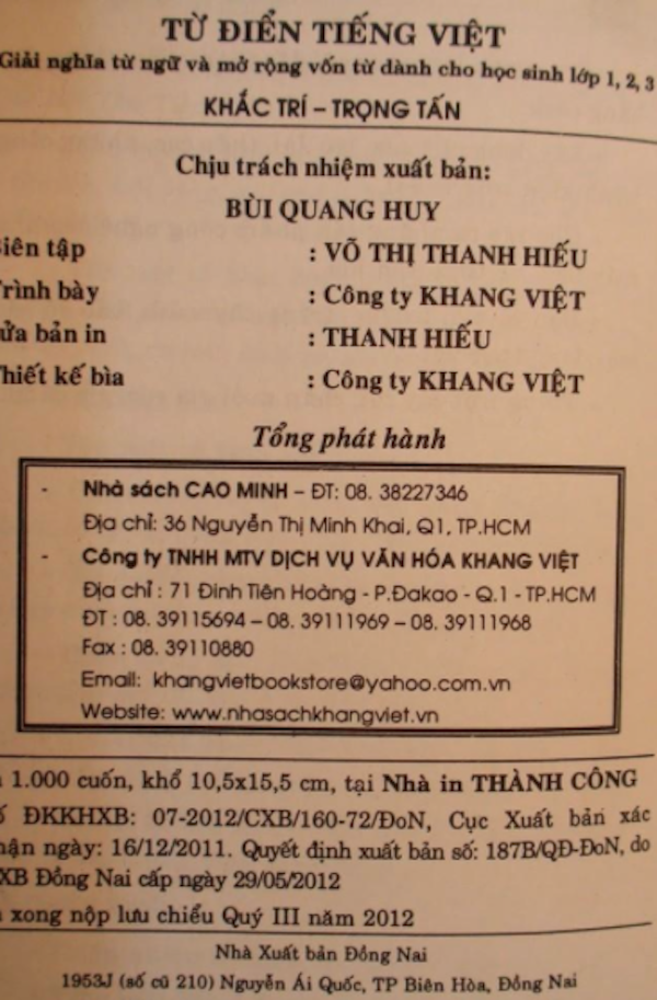 Cả ba cuốn Từ điển tiếng Việt dành cho học sinh của Khắc Trí-Trọng Tấn với đầy rẫy những sai sót nêu trên đều được Cục xuất bản xác nhận Kế hoạch xuất bản và NXB Đồng Nai cấp Quyết định xuất bản.