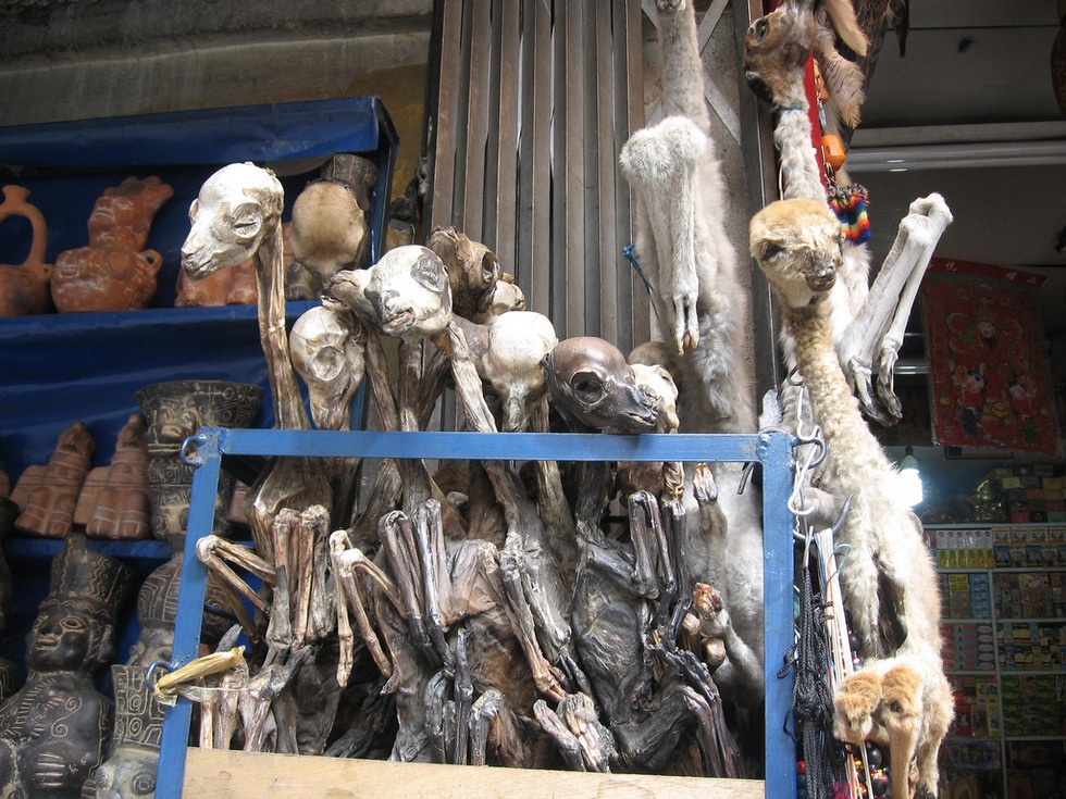 | Khu chợ phù thủy này đã được hình thành từ nhiều đời nay. Nhiều trong số những người thường lui tới các quầy hàng là người Ayamaras bản địa, họ tin rằng tất cả mọi thứ vẫn tồn tại và mọi thứ đều có linh hồn. |